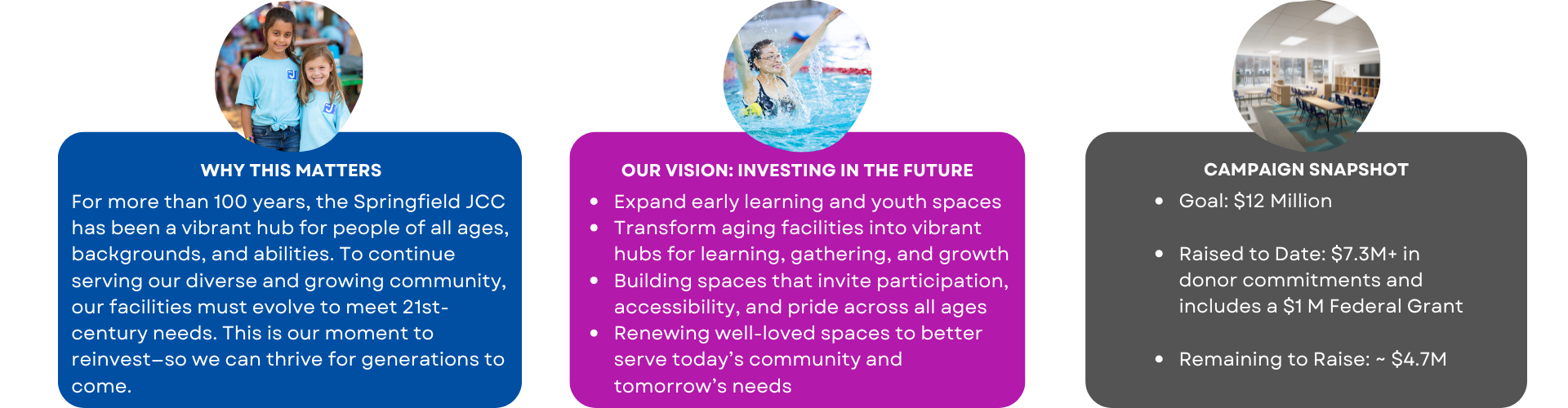 Now, the Be Our Best Capital Campaign is raising $12 million to upgrade our facilities so that children, families, adults, and seniors from all walks of life can continue to learn, grow, connect, and stay healthy here. Keep reading for more information about the campaign, progress to date, and the impact your support can make.